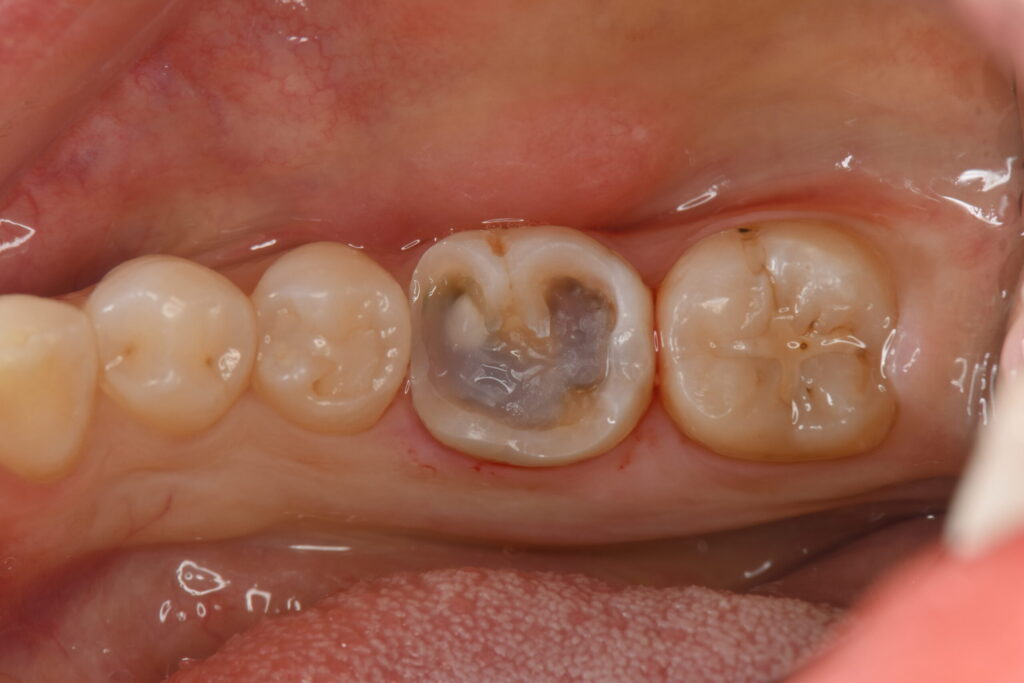 過去に別の歯科医院にて銀歯の詰め物がされており、その下で虫歯が再発していた症例です。