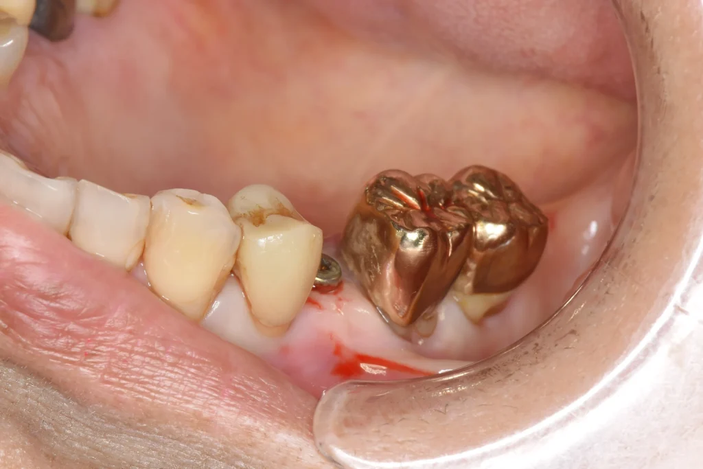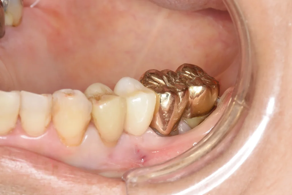 右上の6、7番目にも大きな虫歯があったため、そちらを金歯で治療した後にストローマンインプラントを行うこととなりました。