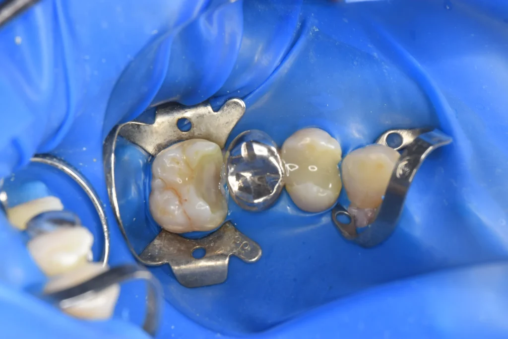 虫歯除去後、神経保護処置を行い、1ヶ月経過をみて痛みがなかったため被せ物治療へ入っていきます。